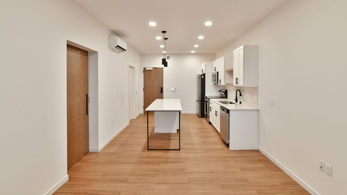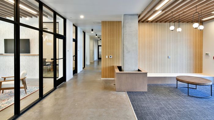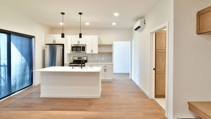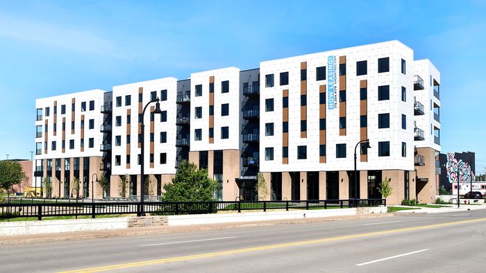 Merge Urban Development’s Andante project is a 5-story mixed-use development with subterranean parking in downtown Eau Claire. The first floor has 8,000 square feet of commercial space, and the remaining four floors feature 76 residential units ranging from studios to one and two-bedroom units. Plans for the development also include a public riverfront promenade with micro-retail storefronts, waterfront dining, and public grill space.