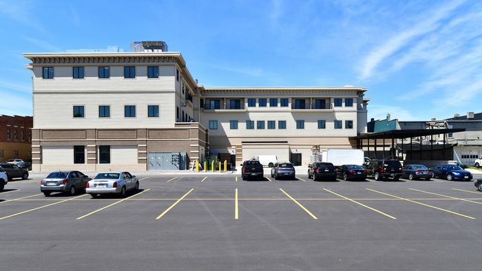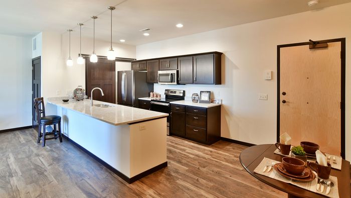 Market & Johnson completed this 3-story, 59,765 square foot multi-use building located in Tomah, WI. The facility features two floors of commercial spaces. Murry’s on Main is a restaurant that moved into one of the commercial spaces. The third floor consists of 11 apartment units. Three of the apartments are two-bed, two bathrooms; two units are two-bed, one bathroom; and six units are one bed, one bath. Each apartment includes a dishwasher, washer and dryer, a storage unit located on the third floor, and one underground parking spot.
