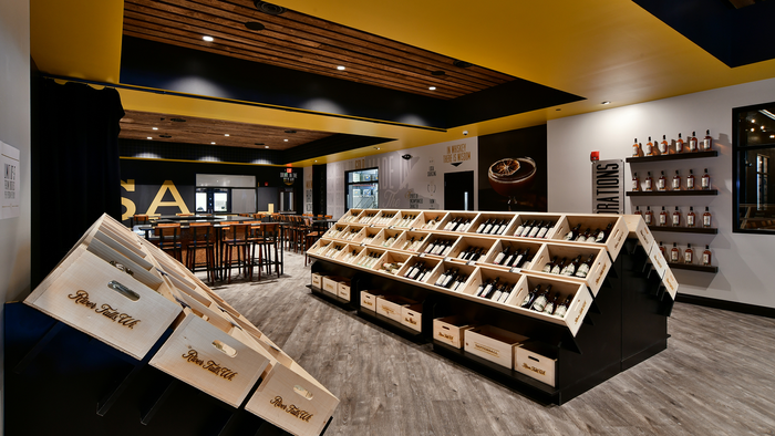Market & Johnson renovated an existing retail facility into this 75,000 sf distillery with a full-service restaurant and cocktail bar that serves up to 150 guests. Additional spaces include a 400 person indoor event space designed for corporate retreats, weddings, and other gatherings, a retail market, boardroom, ballroom, two VIP suites, and a barrel room that will accommodate events, tours, and tastings. The outdoor patio seats another 250 guests and features an indoor/outdoor bar, fire pits, lawn games, and a large amphitheater. Sustainability features of the distillery include solar roof panels and a water-reclaim system.
