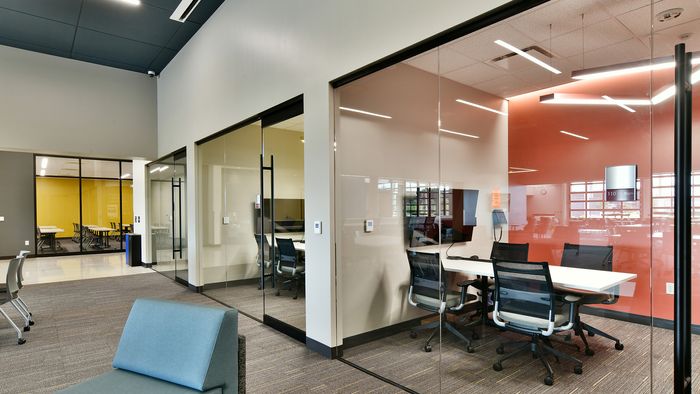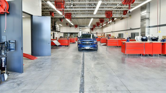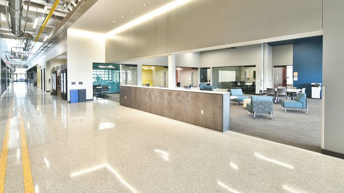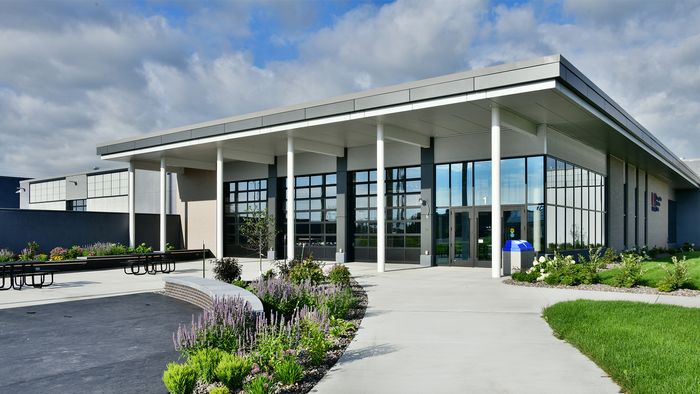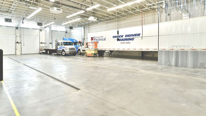 This new 21,000 sq. ft. Transportation Education Center for CVTC includes classroom space, a diesel mechanic shop, an auto body shop, an auto mechanic shop, a small engine shop, welding labs, modern office space, a commons area, and science labs. The facility houses the college's  truck driving program.