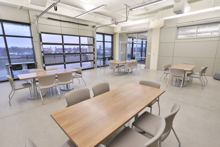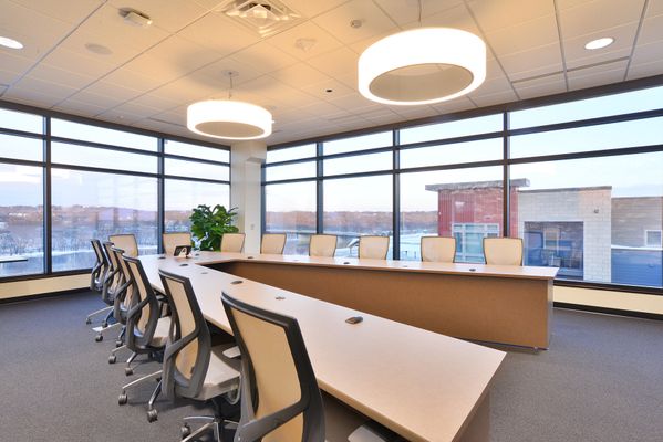 JAMF Software’s new office building located near Phoenix Park in Eau Claire has four levels, plus a penthouse and a partial basement. The precast structure with stone/masonry exterior is an environmentally friendly facility that was built mostly from recycled materials and features power saving and energy efficient fixtures and appliances throughout the facility. The interior is modern and utilizes several shared spaces for employees to allow for a more social work environment; the building will prime use is for writing/designing software for Apple. The fourth level has an outdoor covered balcony with amazing views of Phoenix Park and the Chippewa River.