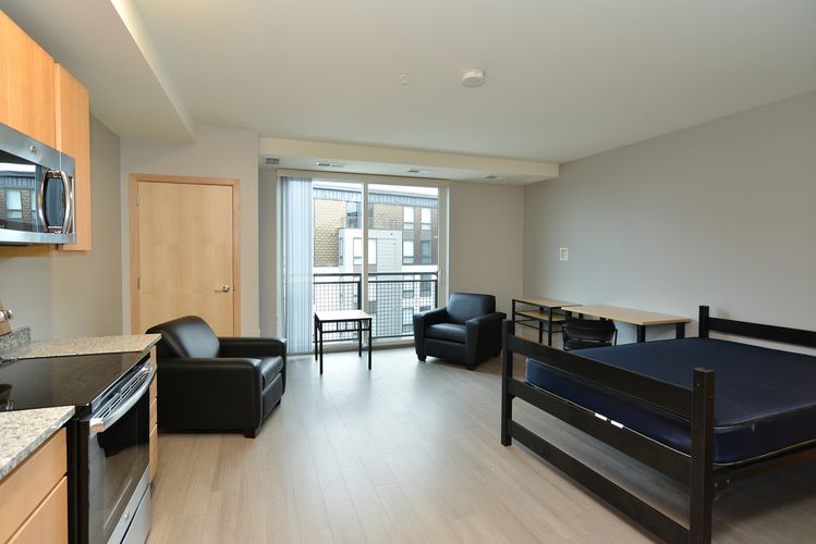 Market & Johnson constructed this mixed-use building located in downtown Eau Claire, WI. The facility has retail and commercial space on the first floor and five stories of apartments above. The apartments range in size from studio to four bedrooms and are suitable for both university students and nonstudent tenants