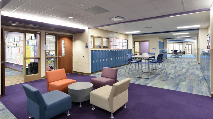 The Northern Hills Elementary’s project included construction of new 2-story additions totaling approximately 36,500 square foot, along with extensive interior remodeling of the 57,130 square foot, existing school. The new additions include new classrooms and educational support spaces. The existing gymnasium is enlarged and completely remodeled with new maple gym flooring and motorized bleachers. The exterior received new masonry veneer and prefinished metal wall panels.